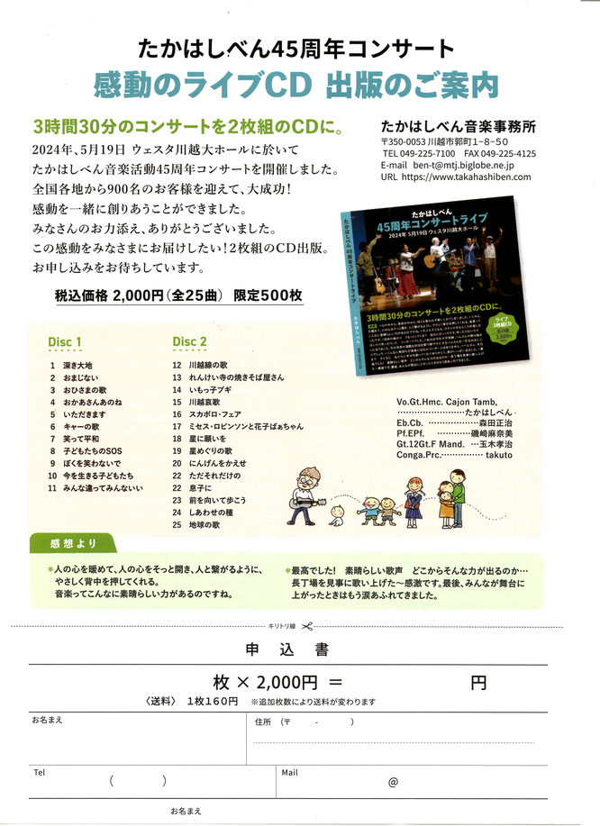 一緒に聴きに行った金安さんにも届けたい!もし金安さんからの注文がまだでしたら、私からプレゼントで送りたいので教えてください〜♪